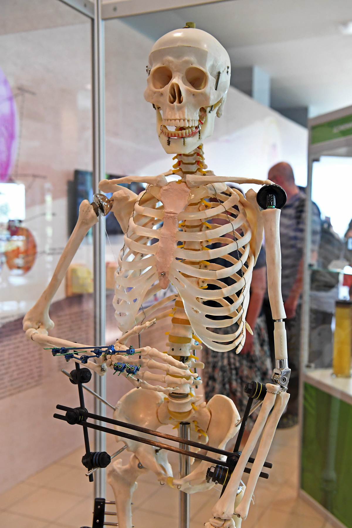 Hlavní část výstavy se pak zabývá vývojem kostních implantátů – náhrady z minulosti konfrontuje s těmi současnými. Tato část uceleně popisuje vývoj poznání v oblasti kostního inženýrství a ukazuje, na základě jakých znalostí se odvíjely první snahy o vývoj materiálů a o konstrukce implantátů od počátku devatenáctého století až po současnost, kdy je vývoj založen na nových znalostech a technologiích. Vývoje takových materiálů se účastní početné týmy odborníků. K vidění jsou současné náhrady například ramenních, kolenních a kyčelních kloubů či anatomické modely v životní velikosti. Na výstavě si návštěvník bude může prohlédnout rentgenové snímky kostních onemocnění. Na skutečných kostech zase může poznávat jeden ze způsobů léčby poranění – např. dlahování či prodlužování kostí.